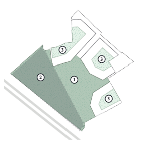 - Behoud van de aanwezige bomen en dichter bouwen om meer open ruimte te hebben