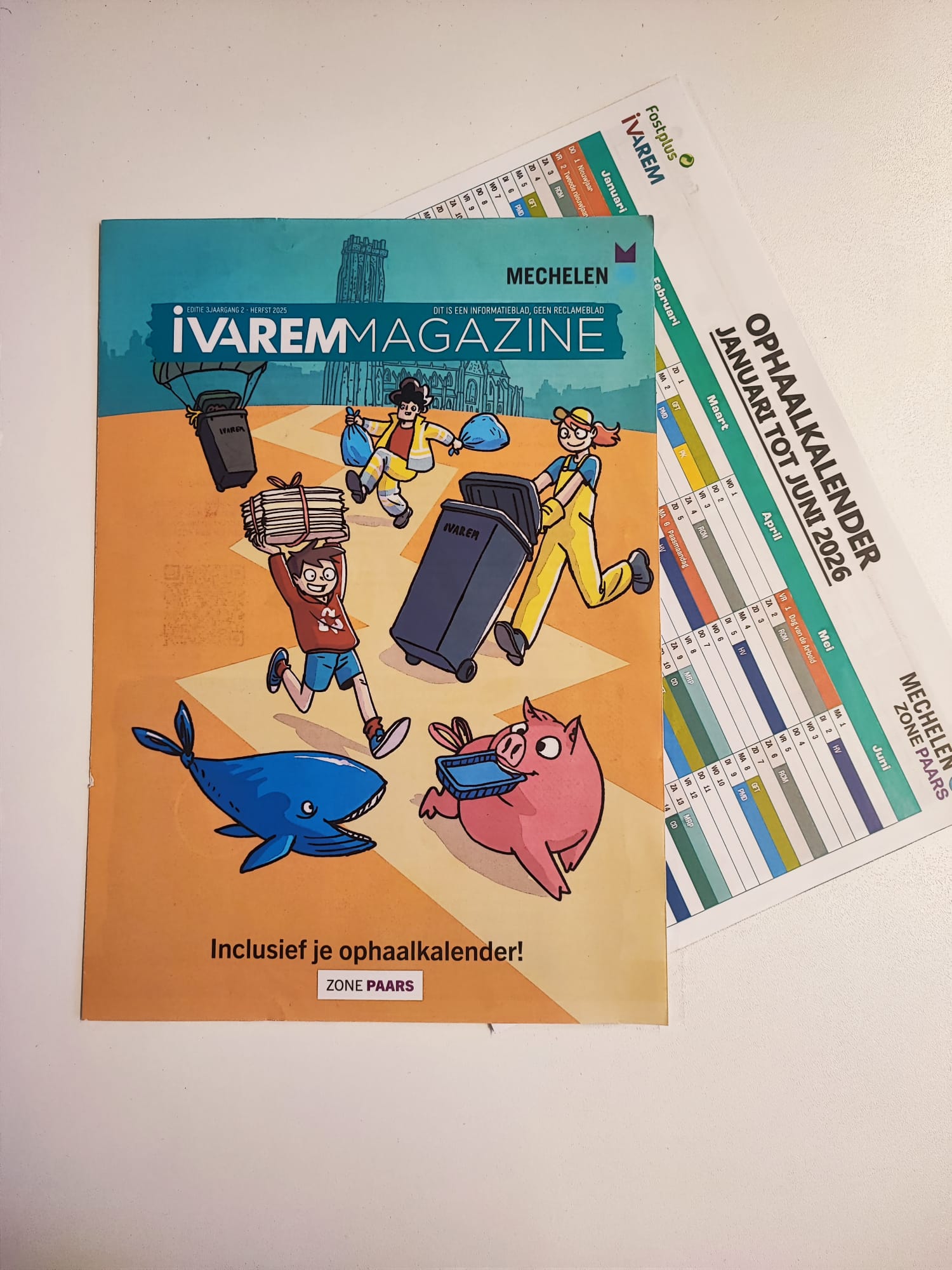 📲 Je kan de kalender ook online bekijken of via de apps van IVAREM, Recycle! en Mijn Mechelen.