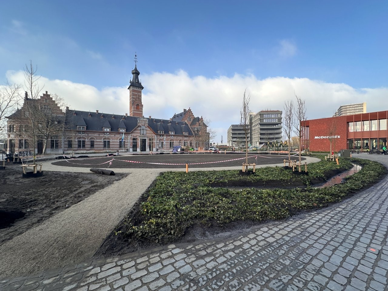 De heraanleg van het Rode Kruisplein is afgerond. Waar vroeger een bovengrondse parking lag, ligt nu een autovrij plein dat uitgroeit tot het levendige hart van de Keerdoksite.