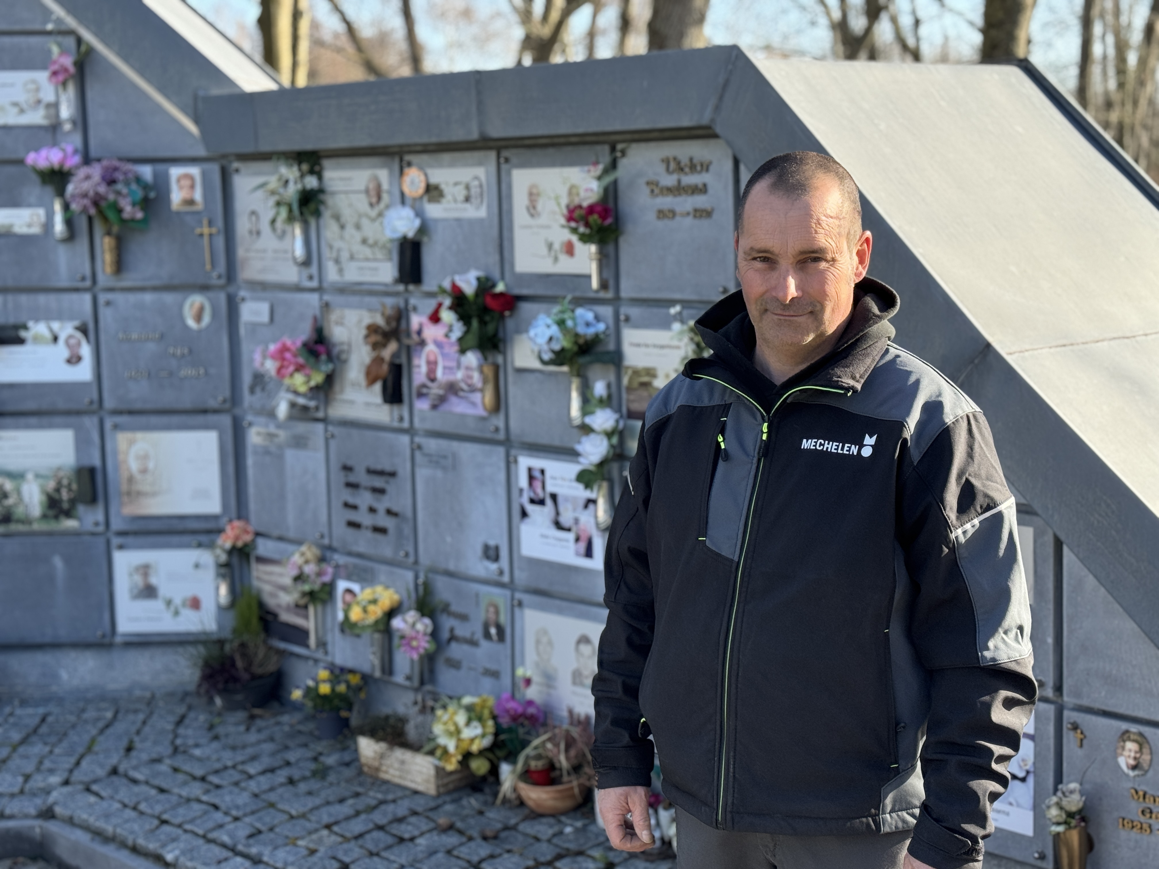 Stefan werkt als technicus voor de begraafplaatsen. Hij zorgt voor het groenonderhoud en verzorgt mee begrafenissen en het uitstrooien en bijzetten van assen.