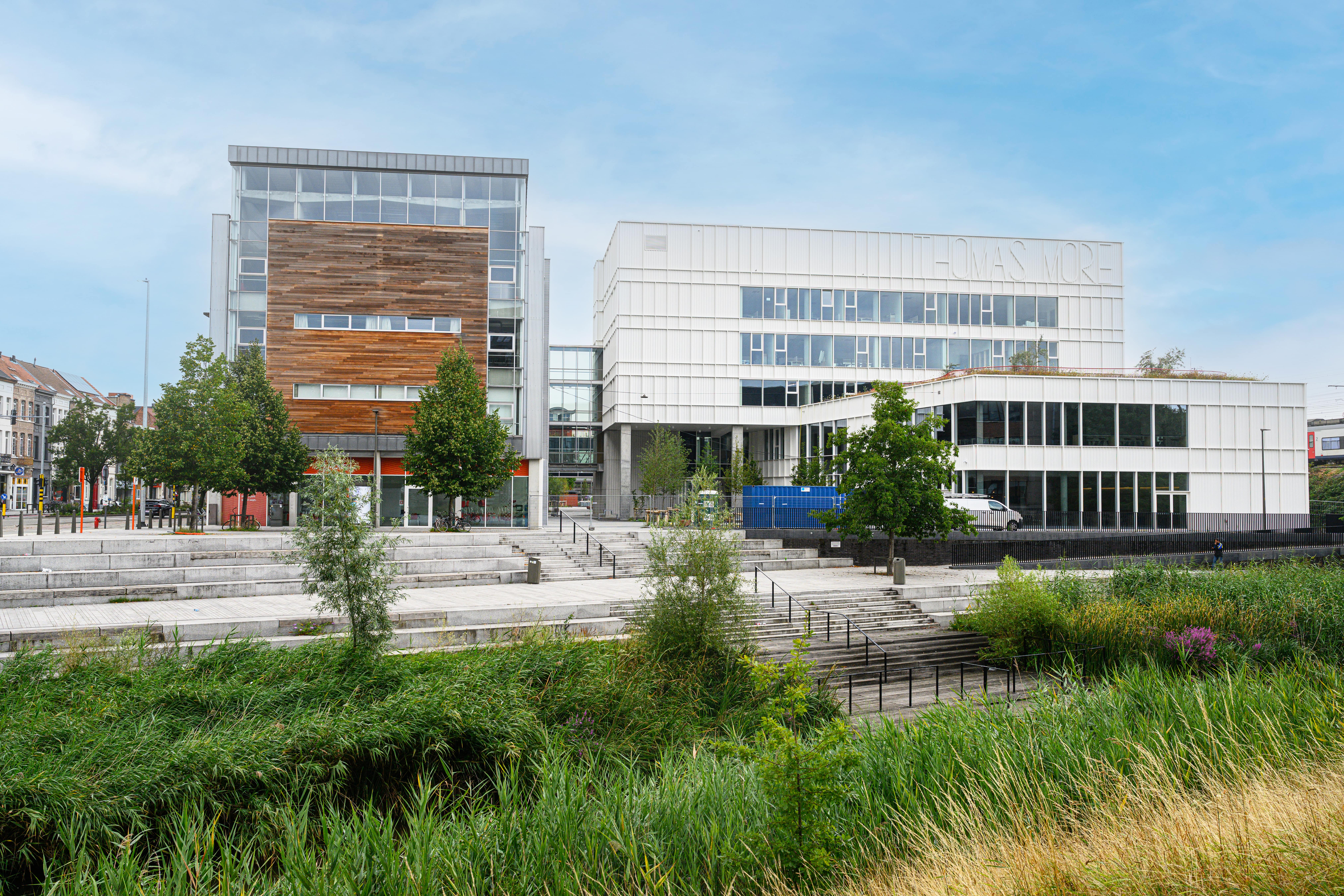 Een uitbreiding op Campus De Vest was nodig. Er kwamen nieuwe aula’s, hybride lokalen voor online en fysieke lessen, projectlokalen, een studentenrestaurant en een leercentrum. De campus werd een fijne plek voor studenten én personeel.